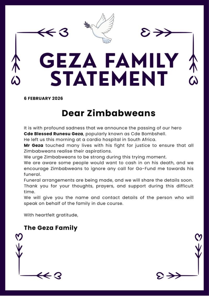 Blessed Geza: Vocal Mnangagwa critic dies in South Africa – family says
