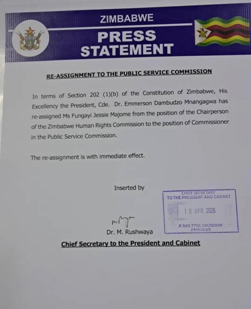 Majome, a former lawmaker and senior legal practitioner, previously served in government during the coalition administration and has been associated with the Movement for Democratic Change(MDC).