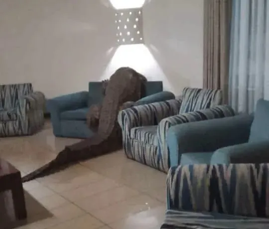 Video footage shows the 12ft beast saunter inside an award-winning venue in Zimbabwe.