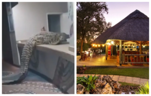 VIC FALLS: Shocking moment hungry crocodile walks into hotel restaurant and leaps over counter into kitchen – leaving diners stunned
